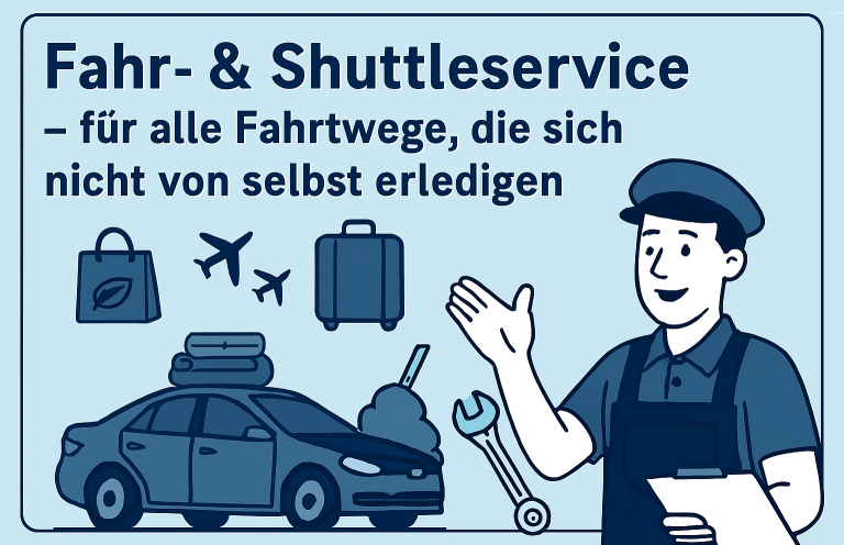 Ob Arzttermin, Einkauf, Flughafenfahrt oder einfach der Moment, in dem das Auto lieber Pause macht als du – ich bringe dich zuverlässig von A nach B. Pünktlich, entspannt und ohne Navigations‑Drama.